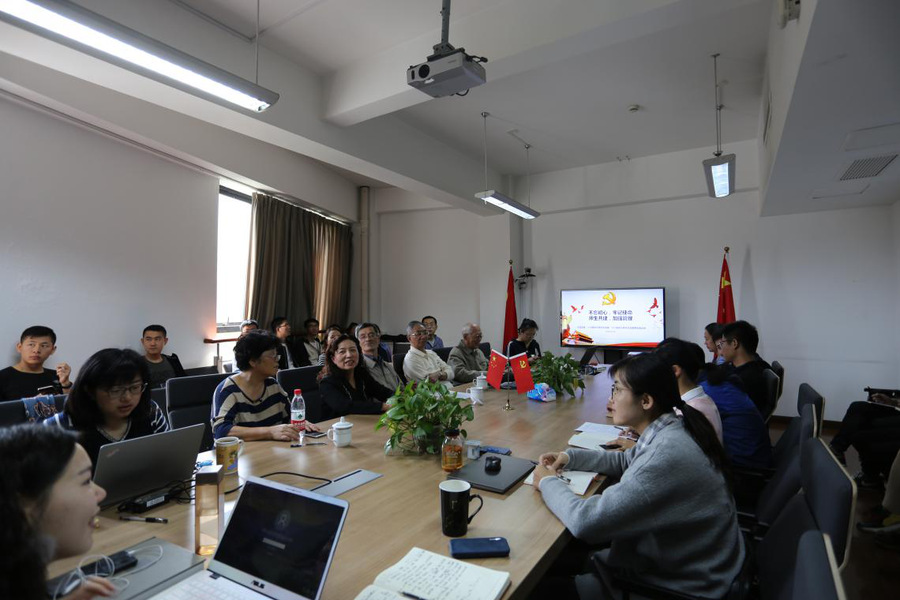 座谈开始,黄蕊老师隆重介绍了老党员于龙生、丁良恩、朱宏雄及陆琴华老师,全体党员以热烈掌声对老师们的到来表示欢迎。随后行政支部全体党员分别介绍了各自的工作岗位和工作内容,学生党员做自我介绍。
