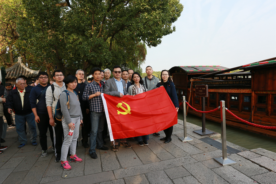 瞻仰南湖红船是现场教学活动的第二站。嘉兴南湖红船是我们党梦想起航的地方,也是“红船精神”的发源地。小小红船承载千钧,播下了中国革命的火种,开启了中国共产党的跨世纪航程。在讲解员的讲解下,大家身临其境的感受着中国共产党成立之初的艰辛和不畏艰难、不怕牺牲,领导中国革命的坚定决心。