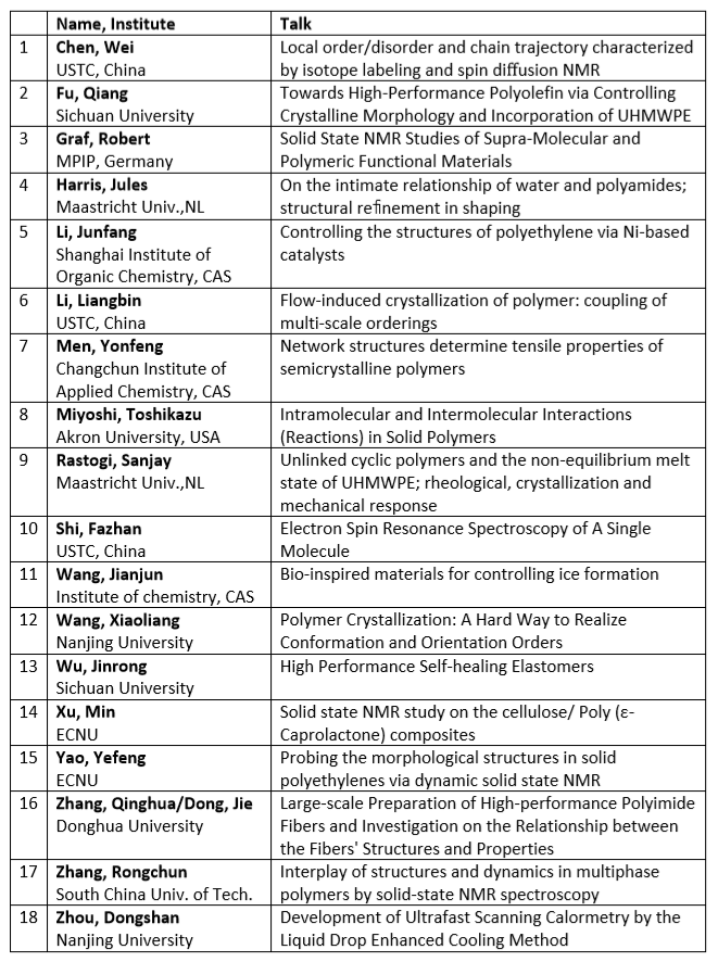 本次学术研讨会由上海市磁共振实验室主任姚叶锋研究员和徐敏研究员发起,来自全世界的18位高分子材料领域的顶级科学家集结于此,主要聚焦的议题为近年来聚合物化学和物理的最新学术思想及发展动态,包括目前最前沿的高分子材料的结构设计、加工和表征等方面研究成果进行深入的讨论和信息交流。