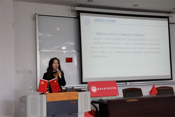 学院副院长徐敏从一流专业申报、全国部分地区大学生物理竞赛、拔尖学生培养、本科教学工作量调整、2018级毕业论文题目征集、公开课活动、困难学生帮扶等方面进行通报。
