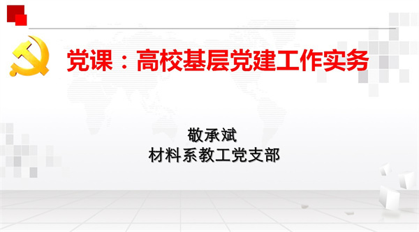 11月24日下午,材料科学系教工党支部在物理楼223会议室开展“严格支部管理,提高思想认识,强化责任担当”主题党日活动,活动由支部书记敬承斌主持。