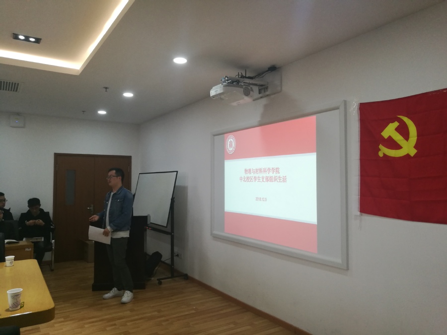 2018年12月5日下午,在物理与材料科学学院党委和各党支部的组织下,中北校区全体研究生支部的所有党员,在理科大楼A814室参加了组织生活会,本次会议邀请了学院关工委于龙生和丁良恩两位老师参会,学院党委副书记马红梅、辅导员黄燕萍也出席了会议,会议由辅导员聂树伟主持。