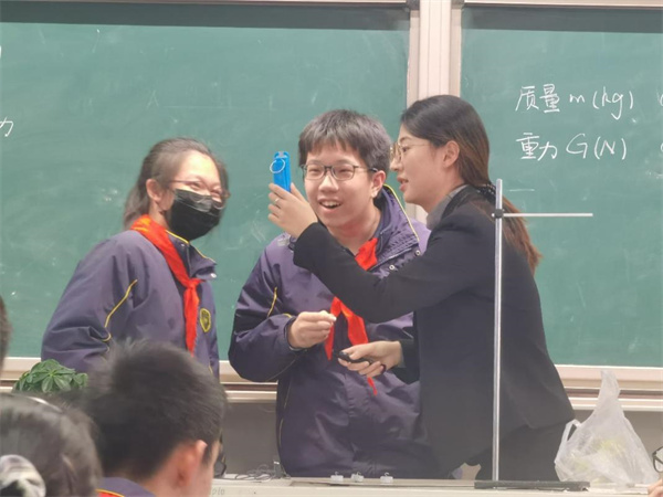 为提升参赛选手的实境授课能力,决赛在文绮中学四个班级中进行,最大程度还原课堂实境。题目《重力》或《变速直线运动》由文绮中学物理教研组老师共同拟定,每位选手抽取题目后,进行20分钟授课。评委则根据选手在授课过程中的内容设计、板书设计、师生互动、教学仪态等方面进行综合考核。