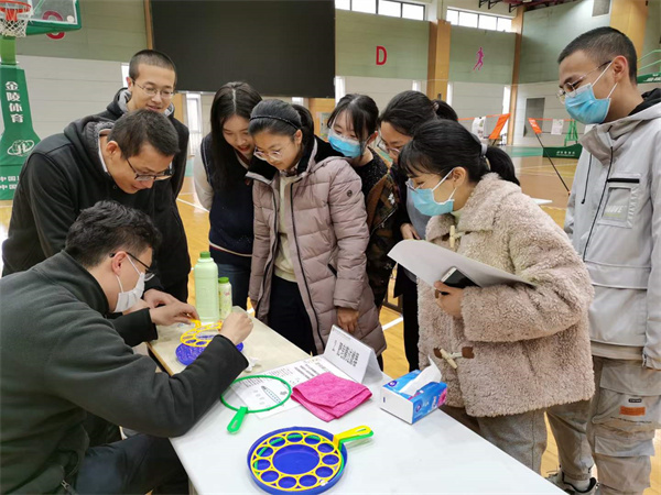 活动中,尹亚玲副教授带来科普报告《“探寻最冷的你”》。随后,志愿者生动展示了15件CUPT历年来科创实验成果,负责讲解的志愿者均为历年比赛的获奖学生。他们齐心协作,耐心讲解,引导中学生动手操作,在快乐实验中理解物理知识,激发中学生探索科学真理的好奇心,启迪了他们的科学精神。