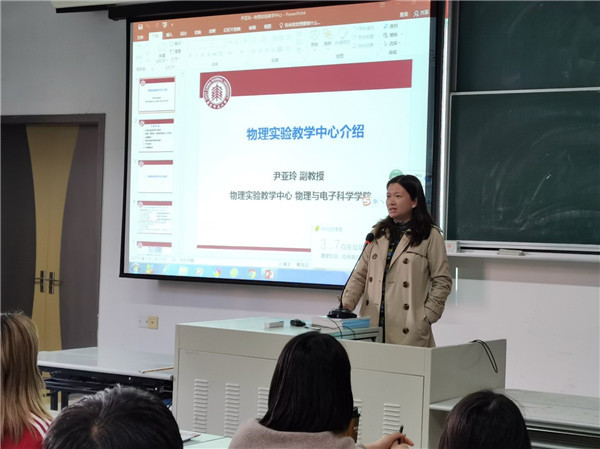 尹亚玲首先介绍了本次活动的主题和内容,并对实验中心的概况、师资、大型设备、探索实验室和CUPT、创新实验建设等作了较为详尽的介绍。她鼓励新生们要充分利用实验中心资源,积极探索和实践物理实验,同时欢迎师范班的同学们报名参加实验中心探索实验室的志愿者活动、参与仿真实验的开发建设及CUPT及科创项目等。此外,梁宏亮向中心教师介绍了新生情况,实验中心刘金梅老师作为师范专业新生班主任,向学生介绍了班级下一步工作计划。