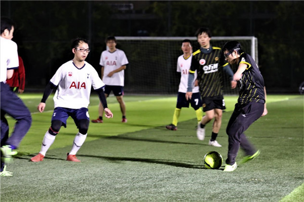 比赛开始,在观众的助威声中,双方迅速进入状态,展开激烈对攻,“热刺队”右边路陈蔚和彭俊松接连打出精彩配合,“狼队”后卫丁匀皓、唐明多次补防,稳住局势。