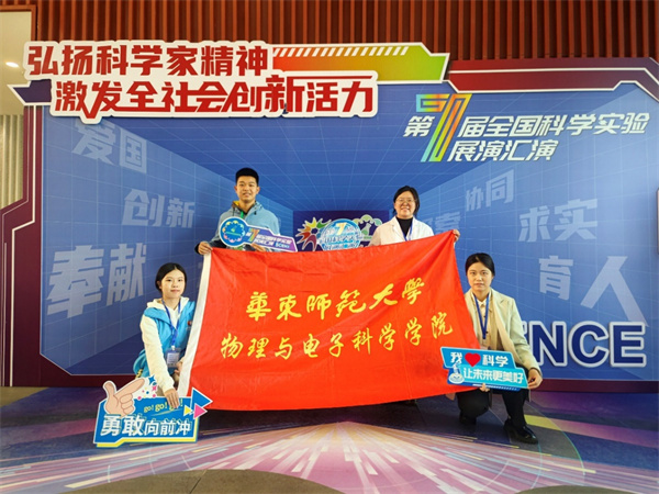 11月29日-12月1日,由科学技术部、中国科学院主办的第七届全国科学实验展演汇演在中国科学技术大学举办。获教育部科学技术与信息化司推荐,物理与电子科学学院师生组成华东师范大学代表队参赛,黄蕊带队参赛,王春梅、李欣、刘金明指导备赛。