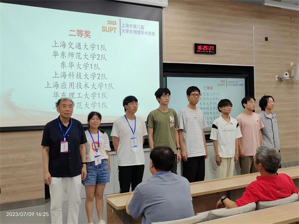 7月8-9日,第八届上海市大学生物理学术竞赛(Shanghai Undergraduate Physicists’Tournament,简称SUPT)在同济大学举行。由我院12名本科生组成华东师范大学两支代表队,经过四轮紧张激烈的对决,取得优异成绩,1队斩获本次比赛的唯一特等奖,2队获二等奖,郐杰同学获得本次上海赛“最佳女生个人奖”。这是我校继2019年以来(2020年、2022年因疫情停办),第三次获得特等奖和最佳女生个人奖。