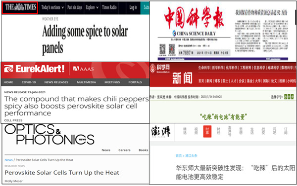 2021年初,保秦烨教授课题组把天然分子辣椒素作为添加剂引入到钙钛矿半导体,结合光电子能谱与光电器件,在国际上首次直接观察到软物质钙钛矿半导体表面电子结构从P型转变成N型的新现象。