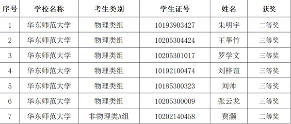 我院学子在第38届全国部分地区大学生物理竞赛(上海)喜获佳绩