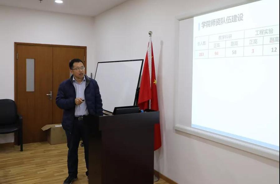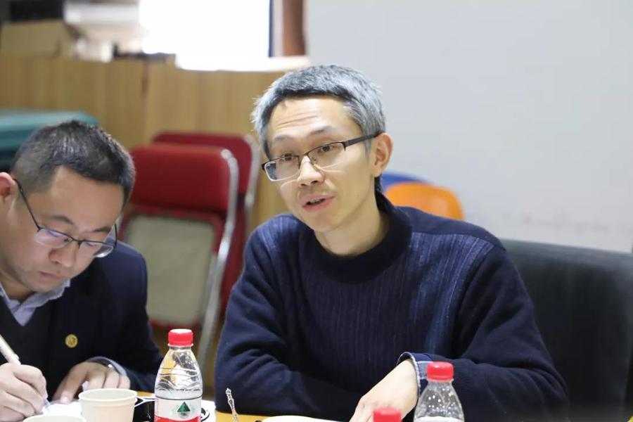 学院副院长武海斌首先作学院发展情况汇报。他从学院发展脉络、师资队伍情况、青年人才培养、科研平台和基地建设等方面,汇报了学院近年来扎根师大,建设一流学科的具体思路和举措。