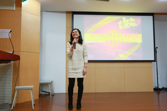 1月19日下午1点30分,2015物理学系教职工新年联欢会在闵行物理楼226报告厅举行,物理学系系主任黄国翔老师、系党委书记马学鸣老师 等系领导及60余位教职工参加了本次联欢会。联欢会由王元力、吴媛两位老师担任主持,整台节目丰富多彩、精彩纷呈,全部由教职工自编自演。