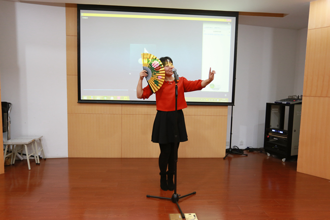 接下来的节目更加精彩纷呈,各学科组的歌曲节目都表现出了教职工们的良好风貌和不俗实力,原子分子组的《我相信》、理论物理组的《我的中国心》、生物物理组的《习大大爱着彭妈妈》、纳光电的《萍聚》、磁共振的《梨花颂》等歌曲节目轮番登台、应接不暇,台上的歌手精神状态饱满,引吭高歌,台下 的观众兴高采烈,聚精会神、目不转睛的欣赏,联欢会的气氛不断推向高潮。