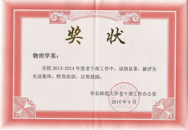 物理系荣获2013-2014年度学校离休老干部工作先进集体称号