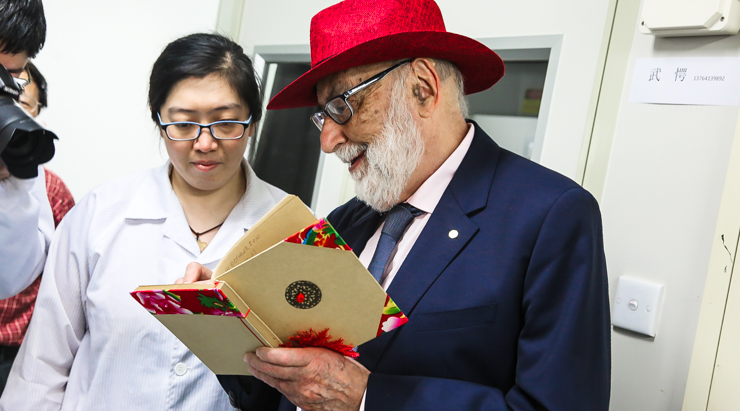 恩格勒将他1964年8月31日《物理评论快报》杂志发表的论文的影印件赠送给华东师大作为特殊礼物。