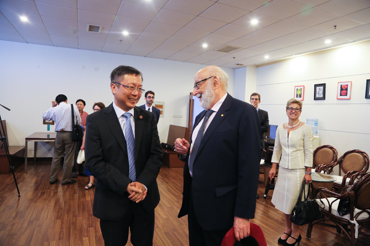 今年4月8日,布鲁塞尔自由大学(ULB)校长Didier Viviers一行访问华东师大。期间,陈群校长正式邀请恩格勒教授年内来校访问,并请Viviers校长转交了亲笔签名的邀请函。收到邀请后,恩格勒教授欣然应允。