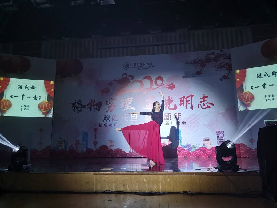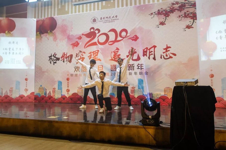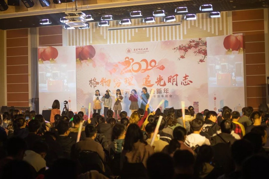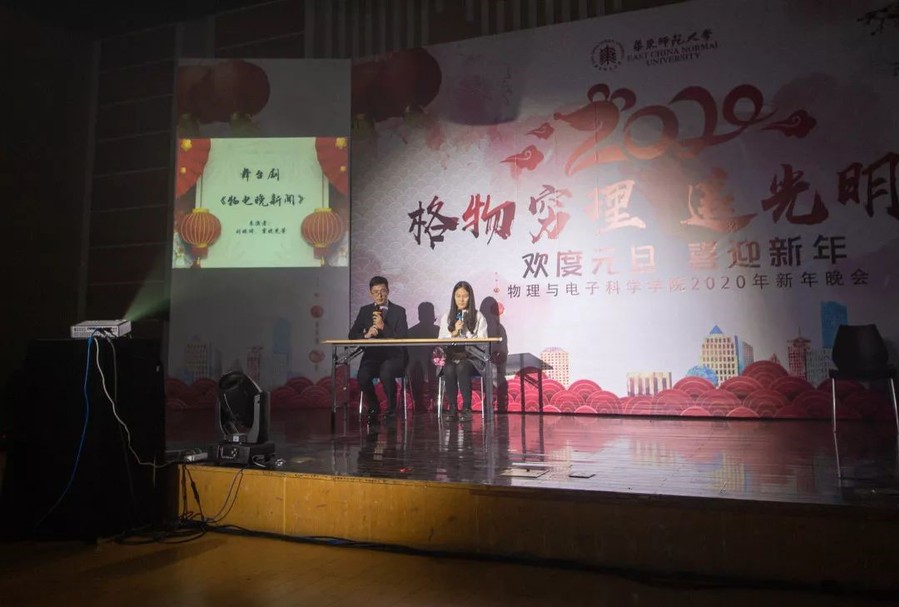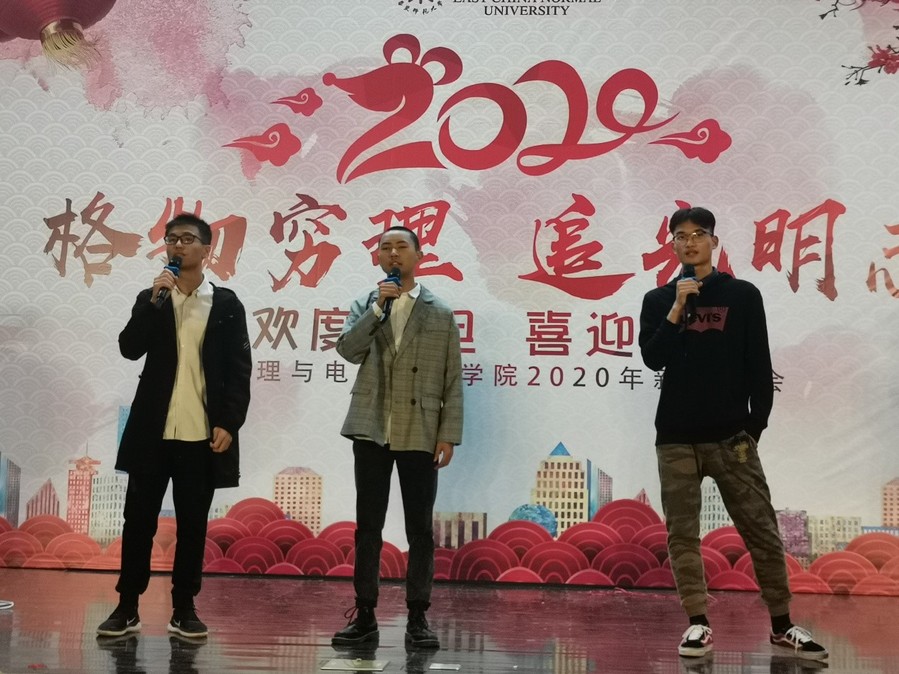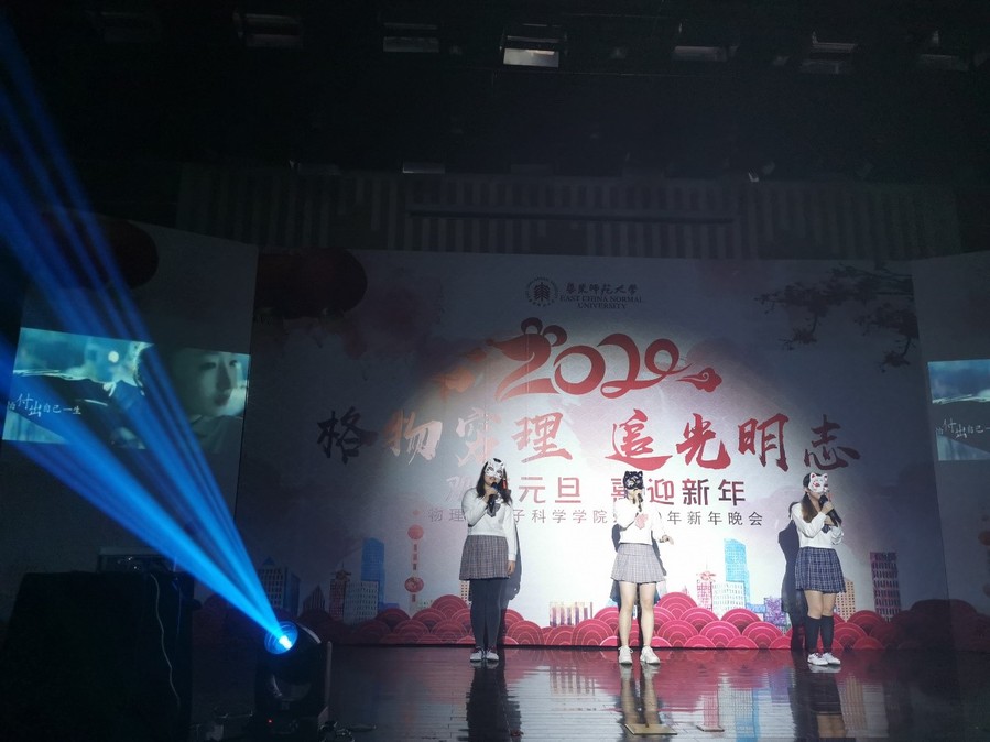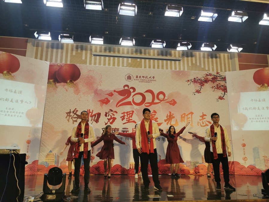 12月16日晚,物理与电子科学学院在闵行校区大学生活动中心C区舞厅举行2019年迎新晚会。学院党委副书记蒋旭、精密光谱科学与技术国家重点实验室党总支副书记马玲、学院部分教职工和两百多名学生参加本次活动。