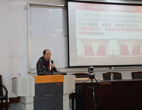 奚洁人以《高瞻远瞩的恢弘蓝图》为题,重点讲解了十九届五中全会学习要点。他指出,党的十八大以来,党中央坚持系统谋划、统筹推进党和国家各项事业,根据新的实践需要,形成一系列新布局和新方略,带领全党全国各族人民取得了历史性成就。全面小康胜利在望,历史将掀开“社会主义现代化”建设的新篇章。