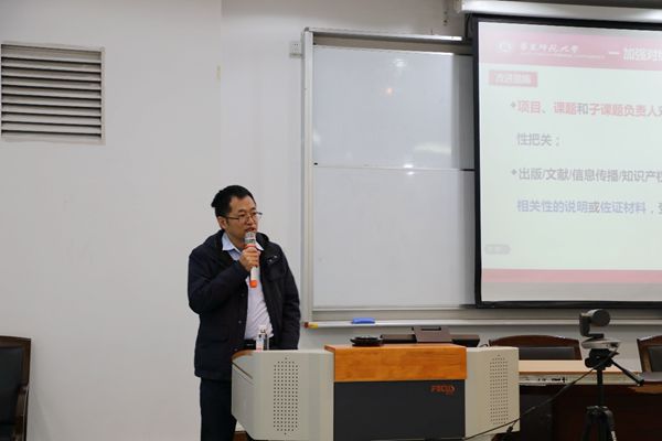 学院副院长武海斌重点对《学校关于进一步优化科研项目和资金管理的通知》文件进行解读。他强调,近期,学校配合科技部经费监管中心对部分科研项目和资金管理进行了检查,通过检查,发现我校科研项目和资金管理方面还存在一些问题,后续将从“加强对经费支出与项目研究相关性的审核”“加强对合作单位经费支出的跟踪和检查”等七个方面加以改进,希望各位老师查阅相关管理文件并按照文件要求遵照执行。