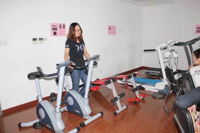 赵荣青老师为大家详细介绍了新购置的跑步机等健身器材的健身功能、使用方法并亲身示范,现场的许多老师都对这些健身器材表现出了浓厚兴趣。