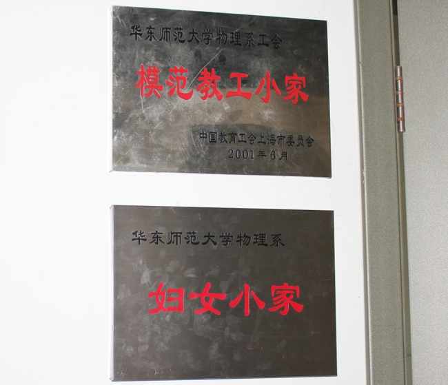 2013年6月5日中午, 物理系“工会之家”、“妇女小家”揭牌仪式在闵行校区物理楼教师活动中心(227房间)举行。物理学党委书记马学鸣老师、系主任黄国翔老师、工会主席姜继森老师及教职工40多人参加了揭牌仪式。