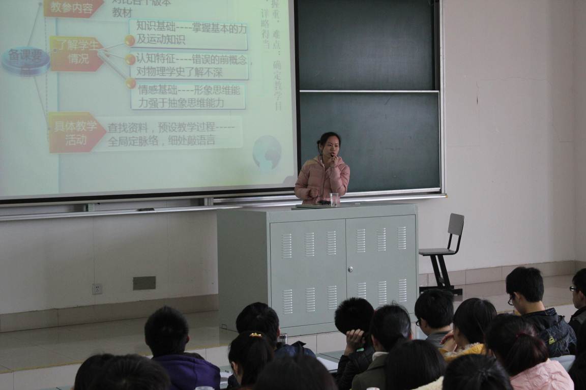3月15日下午,物理系师范生学姐学长经验交流会在二教231教室召开,2010级全体师范生参加了交流会。交流会开始,聂树伟老师首先传达了系里对师 范生工作的重视,特别是对师范生的教学技能和就业实践的殷切期望,接着他还对本次活动的主要目的进行了介绍,希望通过这堂生动的就业指导课,同学们可以很 好地同大四的学姐学长展开自主学习与交流,从而对自己做出适当的定位,为不久之后的就业做好充分的准备。