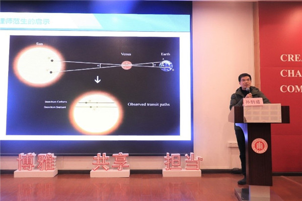 12月23日,由物理与电子科学学院、孟宪承书院联合主办的物理师范专业教师素养提升系列活动在学生共享空间202报告厅顺利举行。苏州工业园区高中物理学科带头人、物理奥赛高级教练孙炳盛作“中学物理奥赛与教师专业成长”专题报告。孟宪承书院副院长梁宏亮、辅导员艾美伶以及学院80余位师范生参加。会议由物理系副系主任尹亚玲主持。