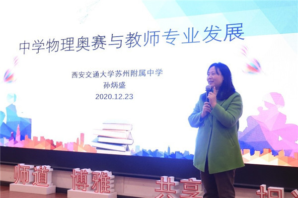 孙炳盛结合自身丰富的从教经验,从物理竞赛背景内容、在中学的开展情况、物理奥赛与教师专业成长的联系等方面进行介绍。他特别指出,学生在物理奥赛中获得高层次奖项,不仅体现了中学生的学业成就,也代表着教师的专业教学指导水平与学校的师资力量。中学物理奥赛辅导是一项专业性非常强的工作,对教师的学科基础、教学能力以及实验操作能力都有非常高的要求,物理奥赛辅导已经成为中学教师专业发展的重要方向之一。