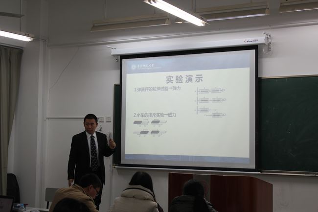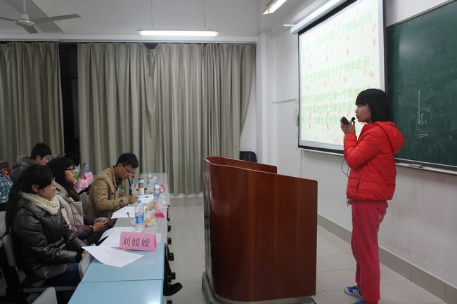 文化网景系列活动之教师风采月系列活动之第八届教师技能大赛初赛于2013年12月18日顺利举行。本次比赛是由华东师范大学校团委主办,物理学系素质 拓展部承办。在经过了预赛的一番激烈角逐之后,来自物理学系、政治学系、数学系、化学系、生物系、地理系、中文系、英语系以及孟宪承书院的64名优秀选手 入围初赛。此次比赛邀请到了来自课程论的研究生以及包括物理学系、数学系、化学系以及政治学系的一共17位评委。比赛分五个赛场同时进行。第一至第三赛场 为物理学系赛场,分别固定选题,课题由选手代表赛前抽签决定,分别为“牛顿第三定律”、“库仑定律”,“力的合成”。第四赛场为理科赛场,第五赛场为文科 赛场,课题均为自选。比赛中,每位选手需在12分钟内模拟一节完整的教学课堂,并接受评委的提问。每四位的选手完成授课后宣布一次评分,八位选手完赛后进 行中场休息。十五分钟休息之后,比赛进入下半场。全部选手比赛结束后,工作人员经过统计,当场公布了各赛场的排名与评分结果。比赛中,选手们表现精彩,评 委专业的点评使参赛选手们纷纷表示获益匪浅。根据赛前确定的晋级比例,本次初赛过后一共有32位选手进入了复赛。复赛将在2014年3月初开始举行。