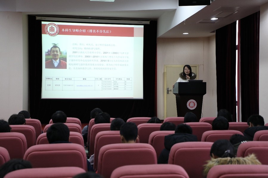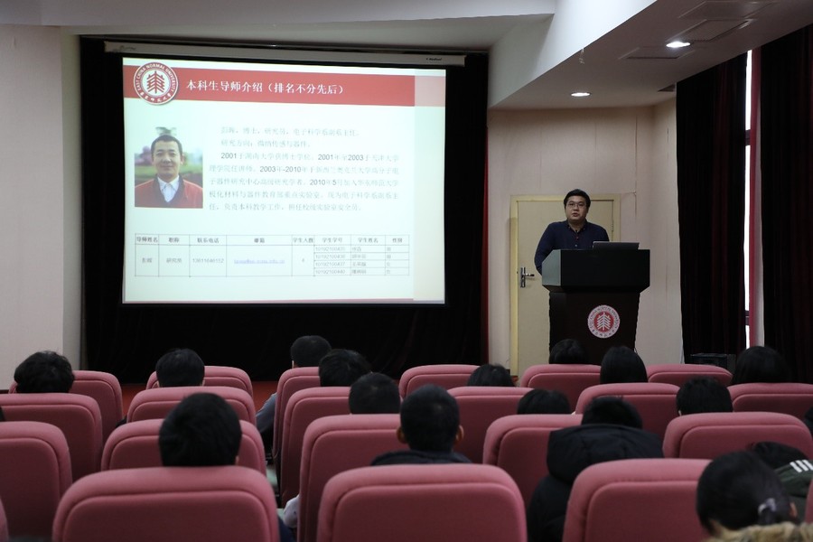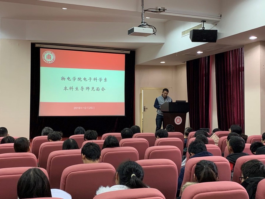 12月25日下午,电子科学系在信息楼147报告厅召开2019级本科生导师制师生见面会。会议由电子科学系副系主任彭晖主持,电子科学系19位本科生导师及75名2019级本科生参加。