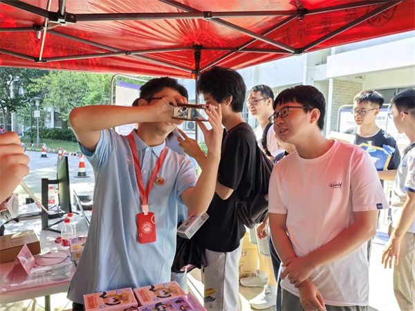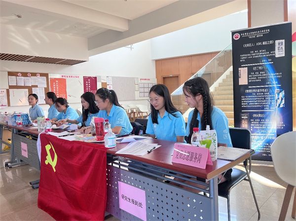 早晨7:30,42名迎新志愿及部分新生学导准时守候在物理楼、大学生活动中心、校门口等点位,协助新生办理报到手续。学院为2023级新生准备了“悟理蓝”院服和“追光”手账本,培养新生归属感和荣誉感,帮助他们尽快融入学院大家庭。