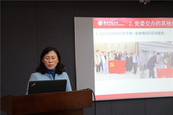 精密光谱科学与技术国家重点实验室教工第一党支部书记潘海峰、材料科学系教工党支部书记敬承斌、电子科学系教工党支部书记黄荣、行政党支部书记章继敏进行述职汇报。学院党委委员对教工支部书记述职进行点评,蒋旭表示,作为校级示范党支部,精密光谱科学与技术国家重点实验室教工第一党支部充分发挥了战斗堡垒作用,希望支部能够进一步扩大辐射引领范围,为师生党支部创先争优树立典范。胡炳文表示,材料科学系教工党支部、电子科学系教工党支部在思想引领、党员教育、服务大局等方面,真抓实干、举措有力,希望两个支部能进一步聚焦学科建设、人才培养,更好地发挥党建引领作用。周先荣表示,行政党支部在服务广大师生的过程中彰显作为,希望支部能基于学院发展现状,拓展交流平台,畅通交流渠道,更好地服务好广大师生。