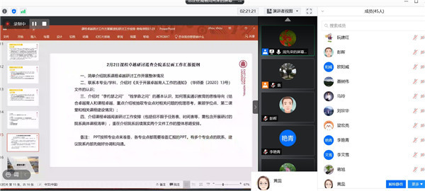 为扎实推进卓越育人工作,根据《华东师范大学课程卓越研讨工作方案》相关要求,1月30日下午,物理与电子科学学院召开卓越育人专题研讨第一次线上会议。学院党政领导班子成员,教学委员会全体委员,骨干教师代表,学工团队及教学管理人员共45人参会。会议由学校教务处副处长、学院副院长周先荣主持。