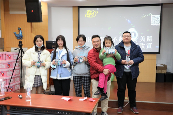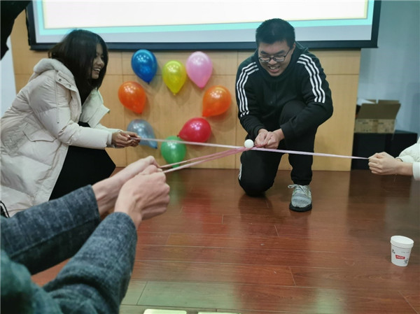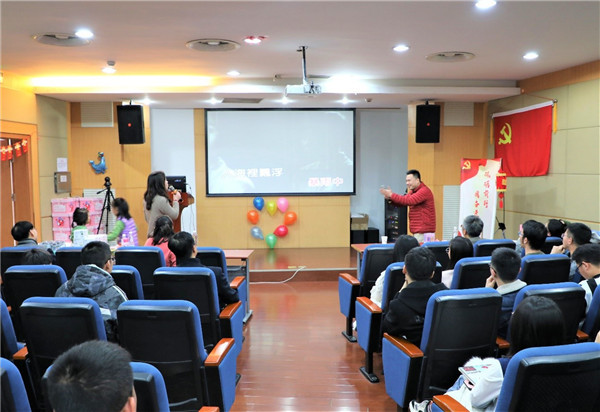 伴随着优美的旋律,参加联欢的师生自选曲目,纷纷上台,或单唱或对唱,博得阵阵喝彩,中间还穿插了“轨道运球”等游戏环节,留校学生7人一组,用两根绳子制造轨道,将乒乓球在3个轨道中运输。联欢会上,学院不仅为每位留校同学准备了一份新春大礼包,还在现场分别抽出了一二三等奖和特等奖,为同学们带来了幸运和快乐。