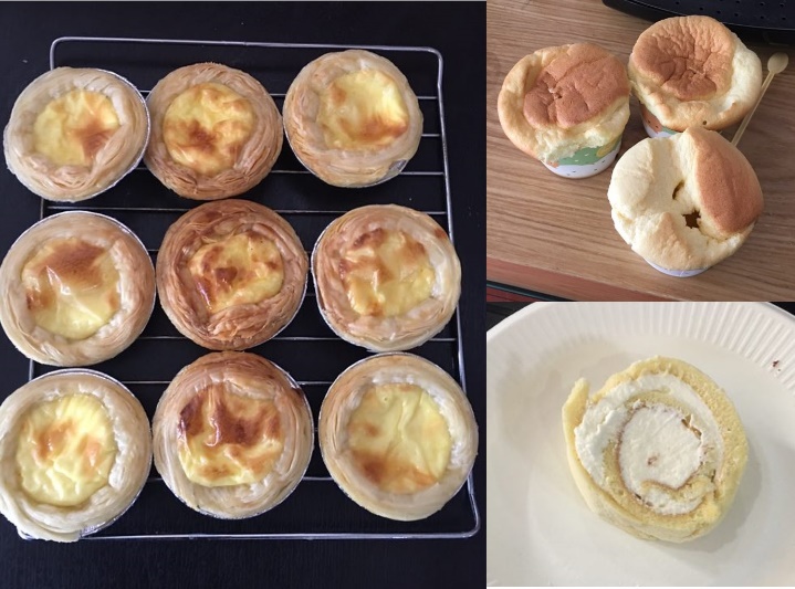 掌握理论知识后,大家分头行动起来,称量、过筛、溶解、搅拌,大家像做实验一样一丝不苟。活动中女同胞们分工合作、互相配合,准备材料、制作配料、烘焙加工,伴着满屋香甜的奶味,美味蛋挞、戚风蛋糕、鲜奶蛋糕卷等相继出炉,大家收获满满。