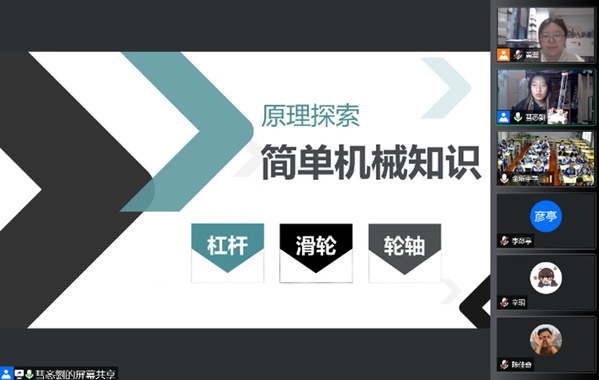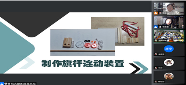 本期课程主题为“制作升旗装置”。刘文慧以2022北京冬奥会引入,为金所中学的同学们细致讲解了自动旗杆的基本构造,及杠杆、滑轮、轮轴等基础机械知识,课程内容丰富、节奏紧凑,让同学们切实感受到了探索物理世界、学习科学知识的乐趣。
