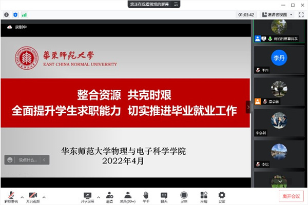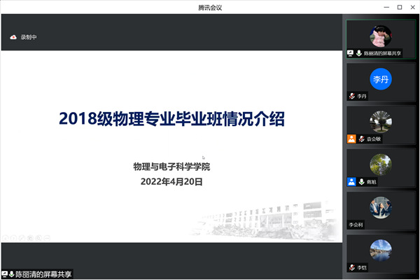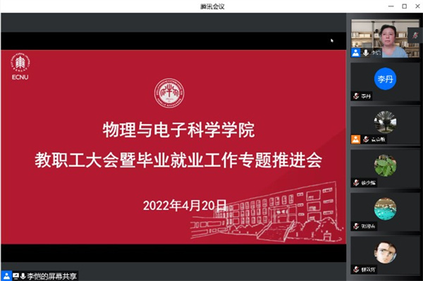 4月20日下午,物理与电子科学学院在线召开四月份全院教职工大会暨毕业就业工作专题推进会,学院各系所、二级学科负责人分别就各单位毕业就业情况和下阶段推进举措作汇报,全院200余名教职工线上参会。会议由学院党委书记李恺主持,班子成员分别通报近期重点工作。