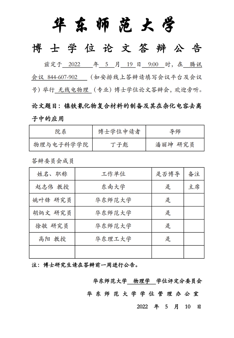 华东师范大学 博士学位论文答辩公告-丁子彪