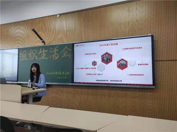 “年度总结”环节,隋峰锐向全体党员作2020年度党支部工作报告,总结了党支部过去一年的成绩,感谢支部党员的支持配合,也提出了支部目前存在的问题,如党员之间融合度不够,与群众联系较少等,同时分享了自己担任支部书记以来,在工作、思想上的变化,也表达了对支部未来的信心。