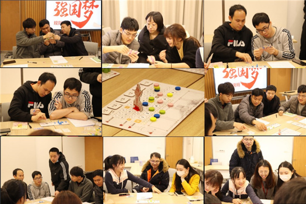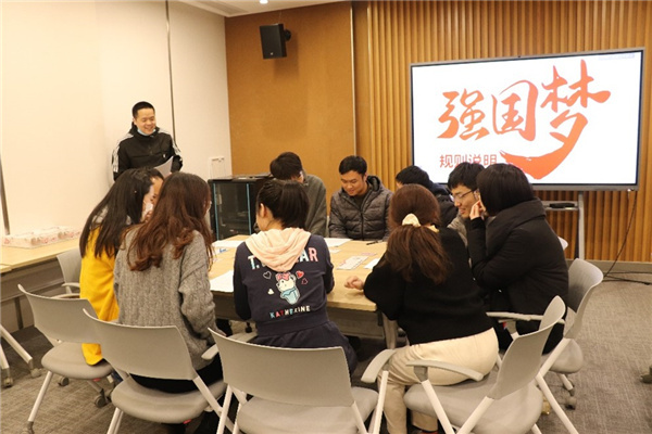 本次党日活动聚焦两会精神,以《强国梦》文创桌游党政知识答题方式进行。支部党员同志分成四组对战,每组3人,同组人员之间可相互讨论、交流,选择合适的卡牌搭配,制定自己的发展策略。游戏过程中,大家积极参与答题,换取文化指数,并通过战略布局,提高战队对比优势,在轻松愉快的氛围中增强了对“两会”精神的认识。