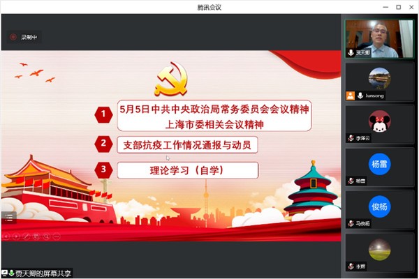 各支部师生党员纷纷表示,要坚定地把思想统一到党中央的决策部署上,在各个岗位上积极投身抗击疫情战斗,同时承诺,带头当好“宣传员”“示范者”“贴心人”,用实际行动画出疫情防控“最大同心圆”,打好大上海保卫战。