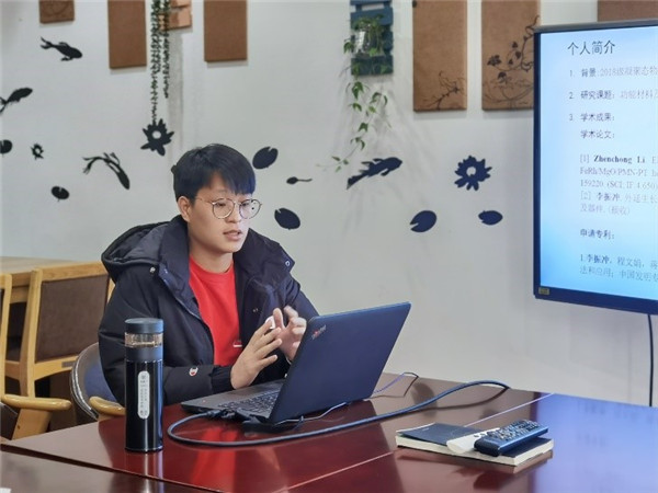李振冲就磁存储介质研究作主题发言,他谈到,为了提升磁介质存储稳定性,需要使磁介质具有较大的磁各向异性,较好的热稳定性等,但较高的各向异性也给信息改写带来困难,在实验中,施加的磁场对高磁各向异性材料的矫顽场过小,不足以克服其矫顽场而实现信息改写。在研究过程中,他聚焦探索在铁电材料衬底上制备单晶薄膜FeRh的方法,实现室温条件下电场调控磁性能,提升磁存储器稳定性,克服改写信息时的低矫顽场。李振冲分享了他的研究方法,介绍了撰写论文的相关思路。