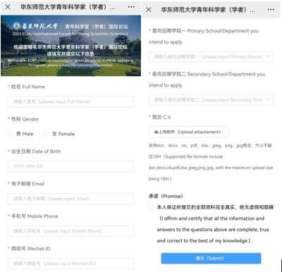 (1)扫描下方二维码,或关注“华东师范大学人才招聘平台”青年科学家论坛相关推送内二维码。