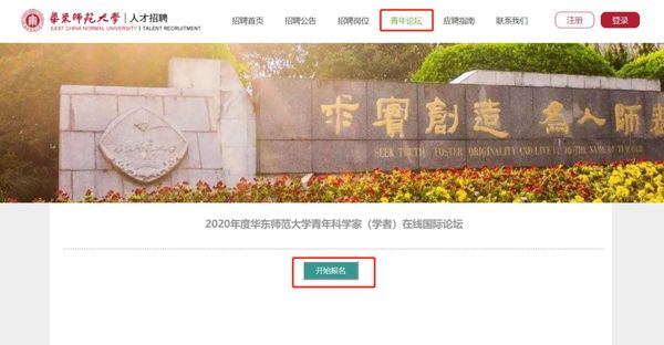 (1)校外申请人输入:www.jobs.ecnu.edu.cn,选择“青年论坛”板块,进行青年论坛在线报名。