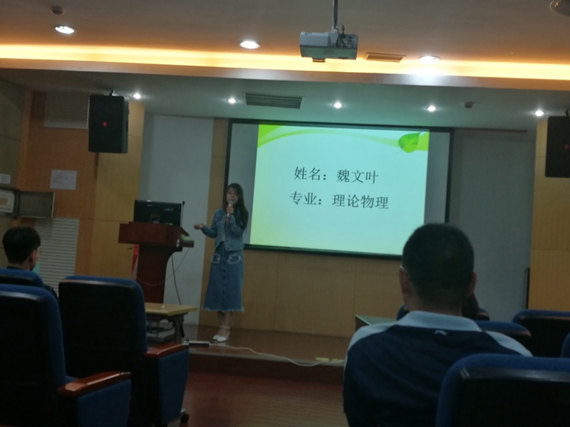 首先,来自理论物理专业的魏文叶师姐给我们讲述了她实习和求职老师的经历。她较早的确定了职业方向,在两所学校的实习过程给她的教学技能打下了坚实的基础,求职阶段简历的制作、投递,招聘会前的准备等都精心细致,面试过程从容自信,为我们总结了宝贵的经验,告诫我们要及早做好准备,未雨绸缪。师姐的经历对于以后想从事教师行业的师弟师妹来说,是一个良好的指导,让他们在以后求职过程中少走弯路。