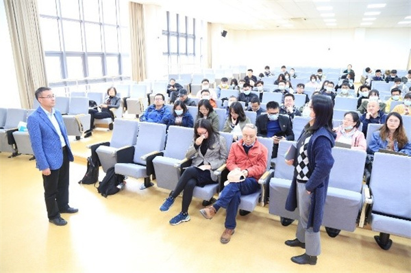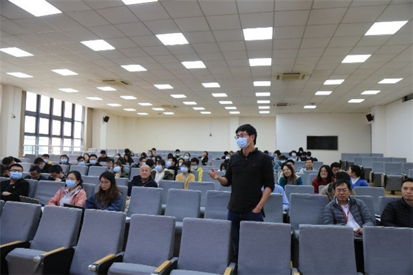 与会师生认真倾听了主题报告,并在报告结束后就我国抗疫先进经验等问题与施劲东进行了热烈交流。电子科学系副系主任、武汉籍教师钟妮对援鄂医疗队队员们表示了感谢。