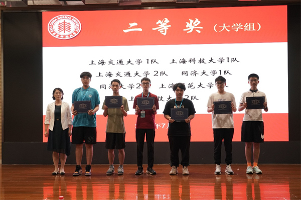 二等奖:上海交通大学1队、上海科技大学1队、上海交通大学2队、同济大学1队、同济大学2队、上海师范大学1队、上海科技大学2队
