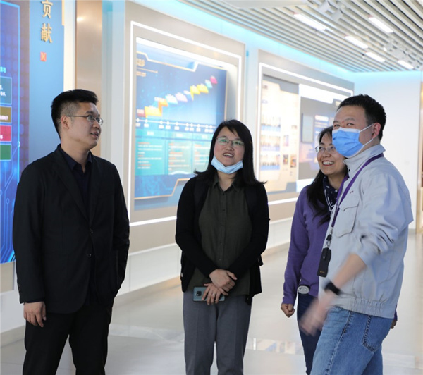 在展示厅,讲解员介绍了华虹集团上海华力的发展历程。建立华虹集团是上世纪9 0年代国家推动信息产业发展的重要举措,上海华力是上海华虹(集团)有限公司下属骨干企业, 20多年来,华虹集团作为中国集成电路产业发展的先行者和主力军,率先建成了中国大陆第一条8英寸集成电路生产线、建设了本土企业第一条全自动的12英寸生产线。目前,其产品广泛应用于自动导航、智能家居、电子支付、节能减排等领域,为助推我国信息产业发展发挥了重要作用。