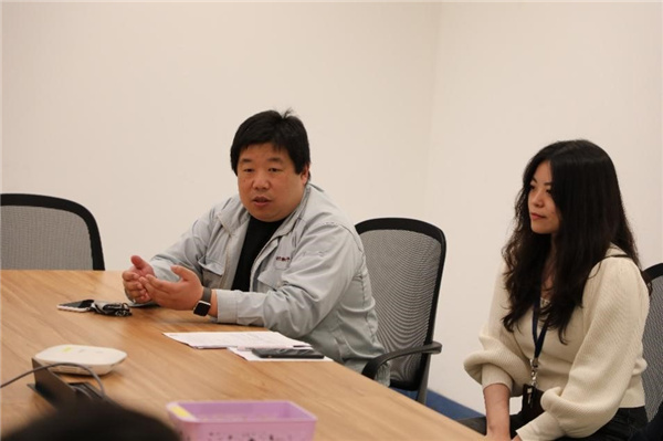 上海华力人力资源部部长助理苏瑞琴,上海华力人力资源部黄诗艳,我校2012届校友、研发二部主任张鹏参加交流研讨。
