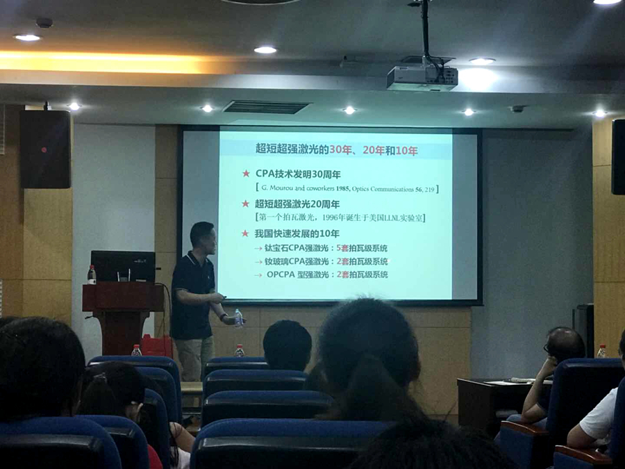 钱教授是国家2011计划IFSA协同创新中心执行主任,激光等离子体教育重点实验室主任。长期担任国家863计划和重大专项的专家组成员,获国家杰出青年科学基金资助(2007),入选科技部重点领域创新团队(2015)和国家“万人计划”(2017)。从事超快非线性光学研究,聚焦服务国家重大科研设施的创新建设。在光科技领域产生了数项标志性技术,包括“谐振腔内倍频的甚多纵模方案”、“三倍频光焦斑控制技术”、“脉冲信噪比单次测量仪”、“啁啾脉冲准参量放大QPCPA方案”等,在国际高技术产品和国家急需两方面获重要应用,被专业报道世界光科技发展动态的美国著名媒体《LaserFocus World》亮点报道7次。然而钱教授幽默风趣的讲授方式却让同学们感到格外亲切。